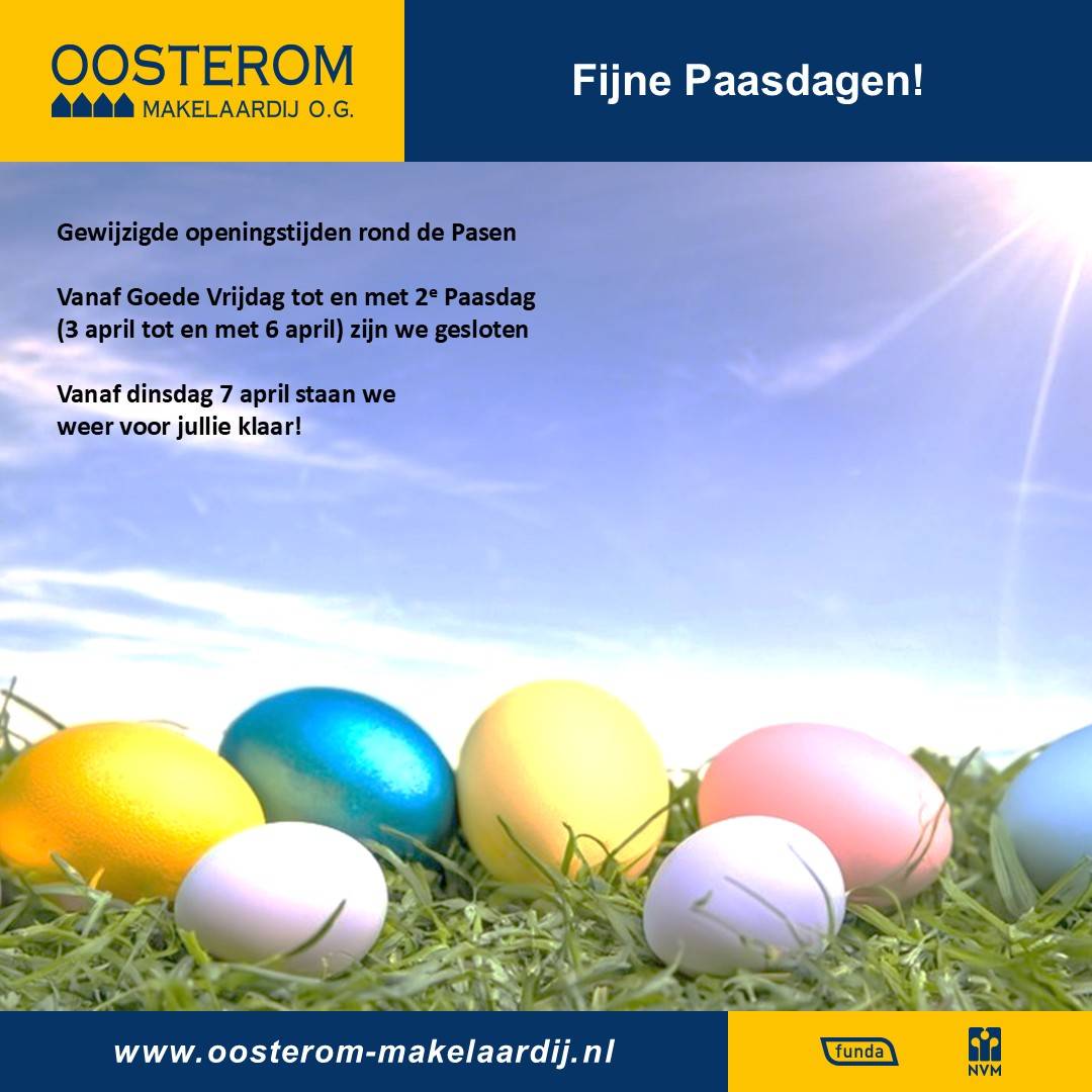 Vanaf Goede Vrijdag tot en met 2e Paasdag (3 april tot en met 6 april) zijn we gesloten.