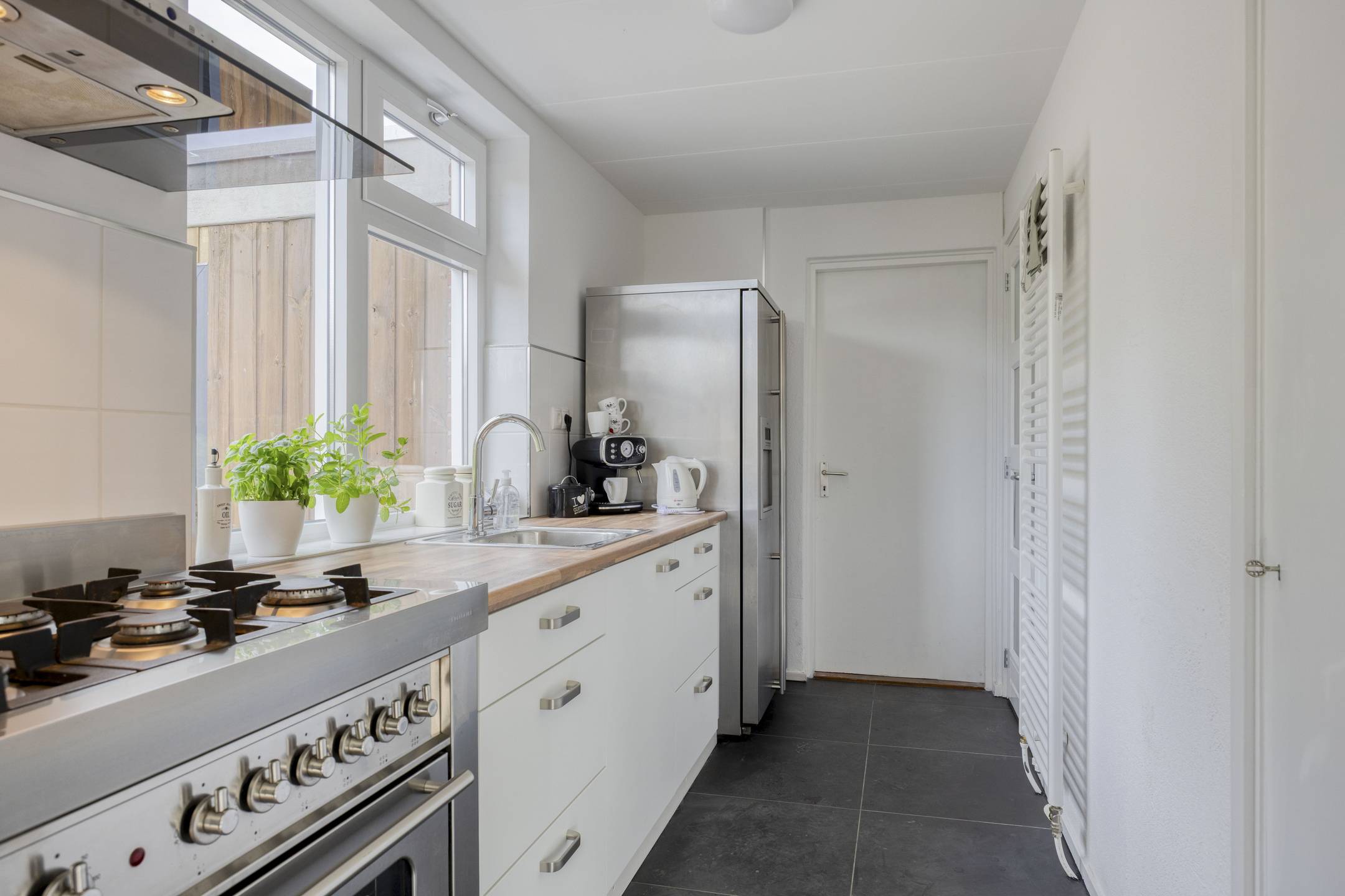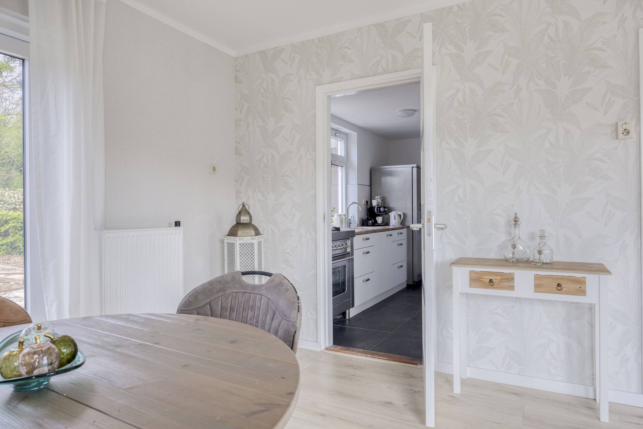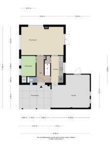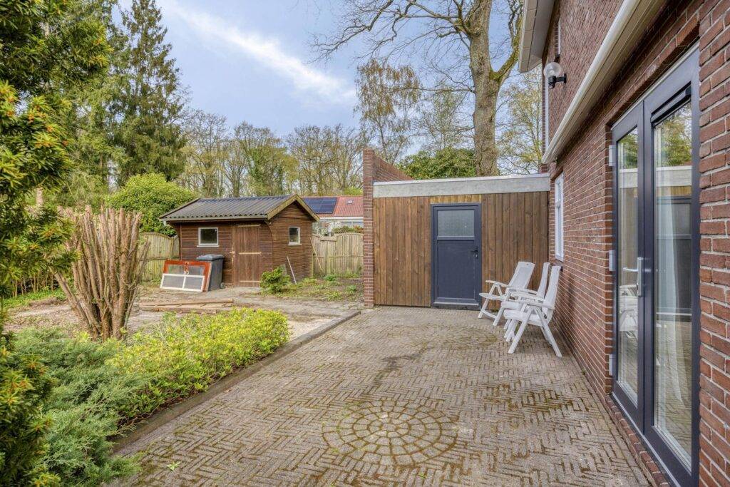 Indeling: overdekte entree (onder de carport), hal, toilet (wandcloset) met fonteintje, provisiekelder, slaap-/werkkamer voorzien van laminaatvloer en inbouwkast, woonkamer voorzien van laminaatvloer, airco-unit en tuindeuren naar terras en achtertuin, in 2026 aangebrachte keuken voorzien van inbouwapparatuur (gaskookplaat, afzuigkap, oven en koelkast) en design-radiator, binnendoor naar de L-vormige garage/berging voorzien van een sectionaaldeur, elektra, verwarming, wateraansluiting en een deur naar terras en achtertuin.