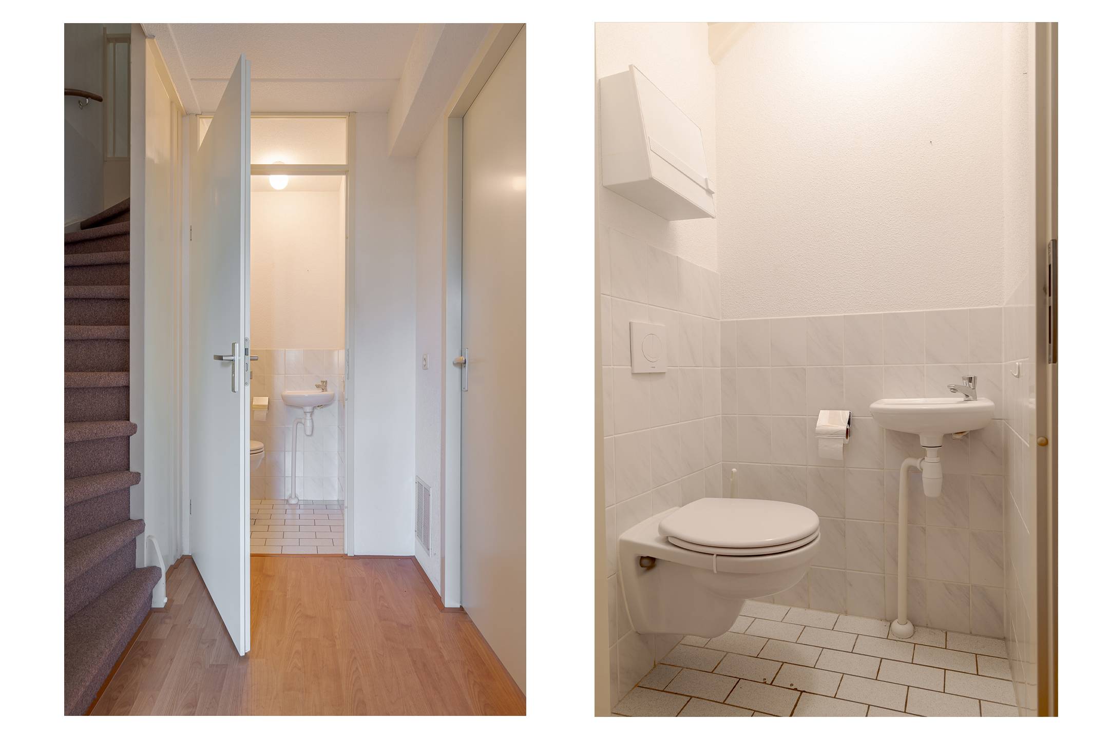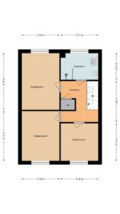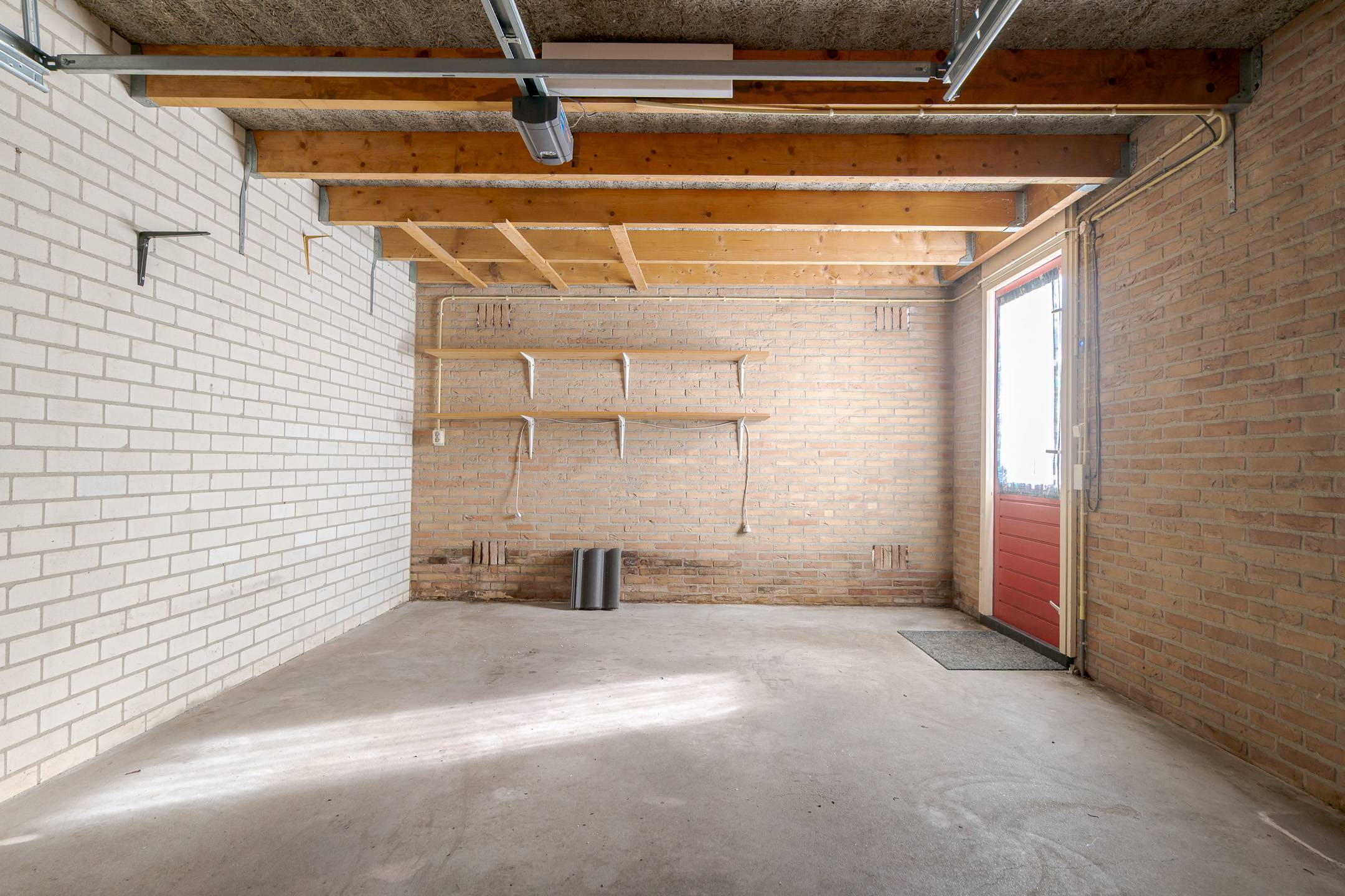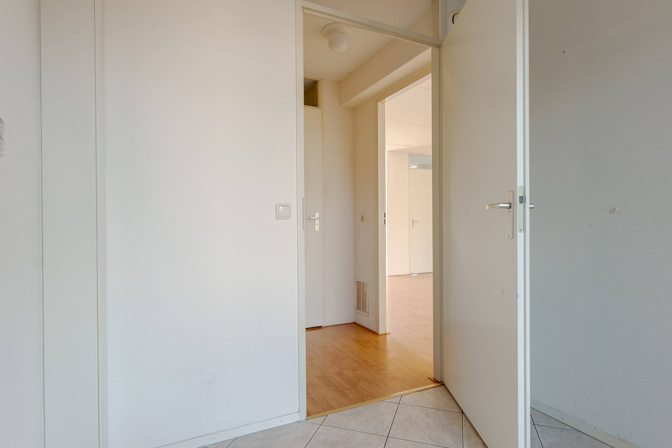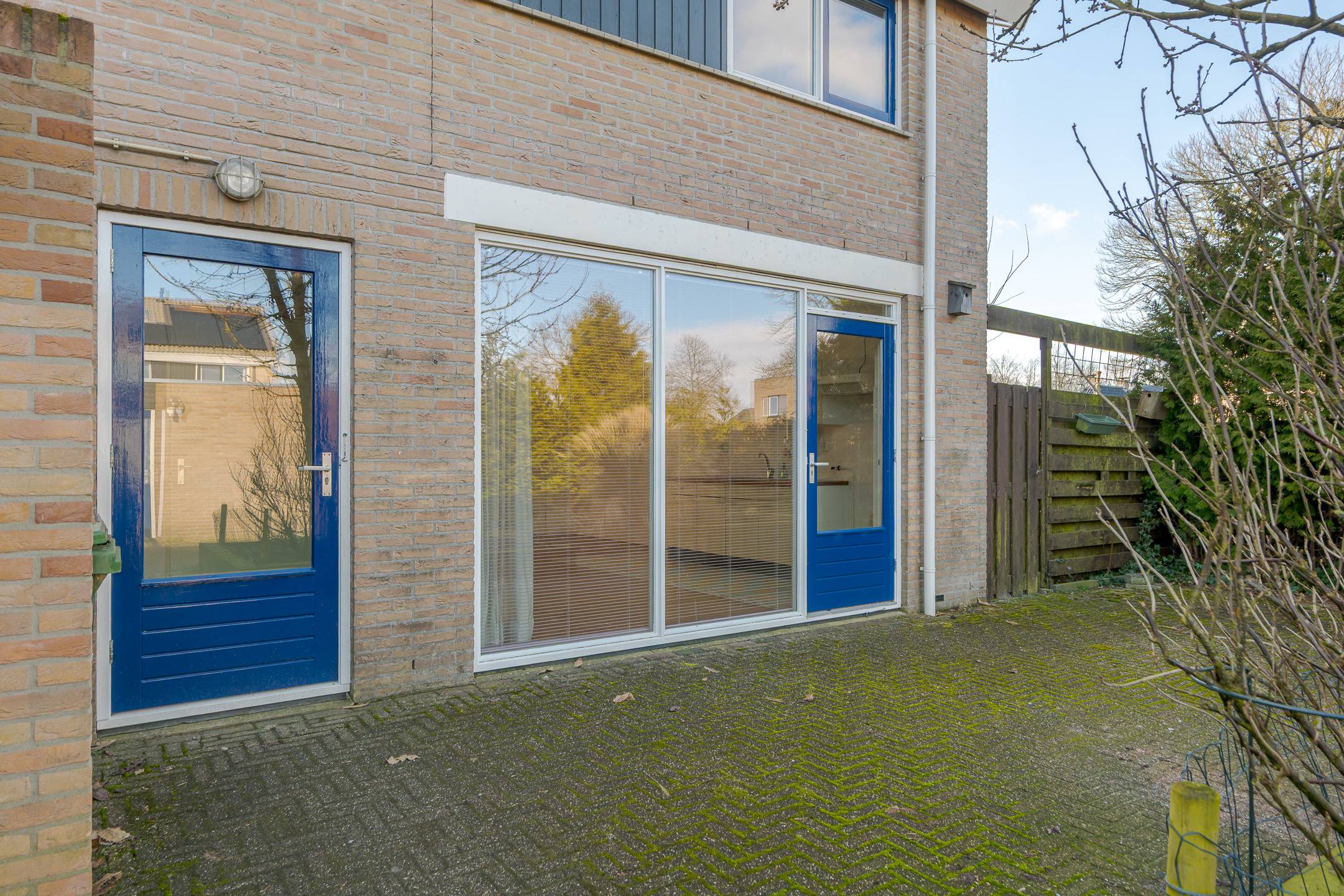 Indeling: overdekte entree, hal, woonkamer met open inbouwkeuken en tuindeur totaal 42 m², bijkeuken met witgoedaansluiting en buitendeur, tussenhal met toilet (wandcloset) en trapopgang naar de:
