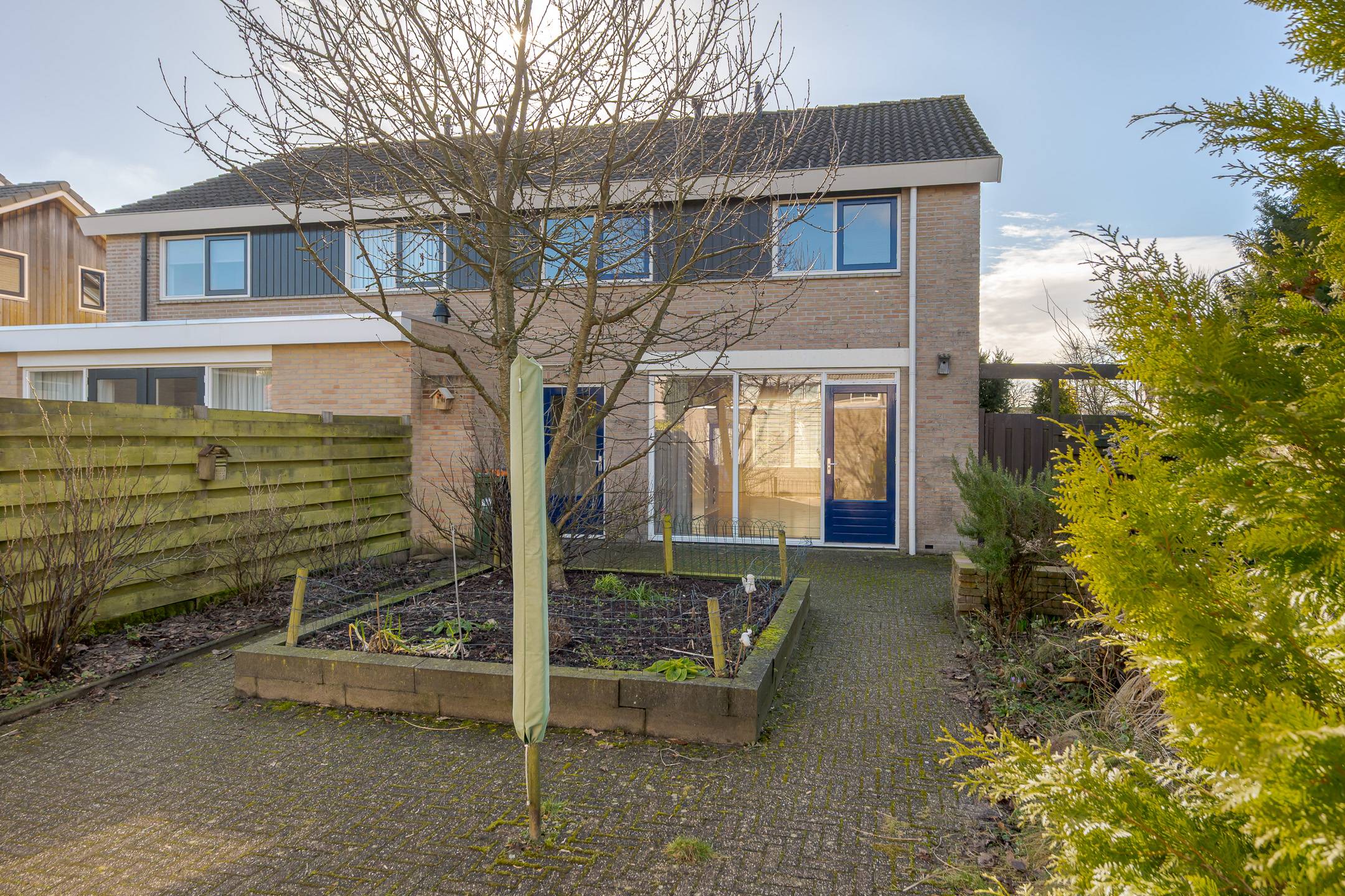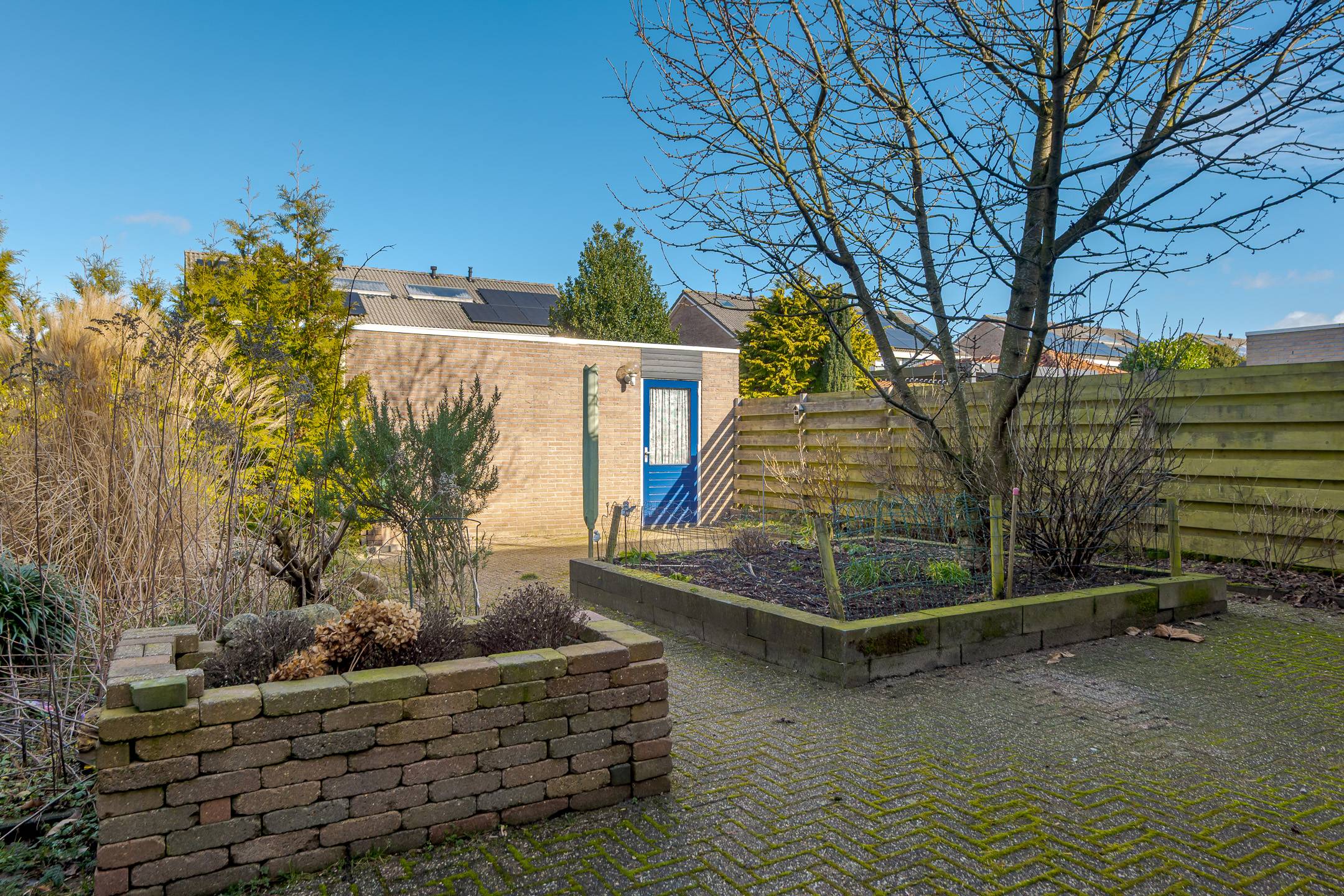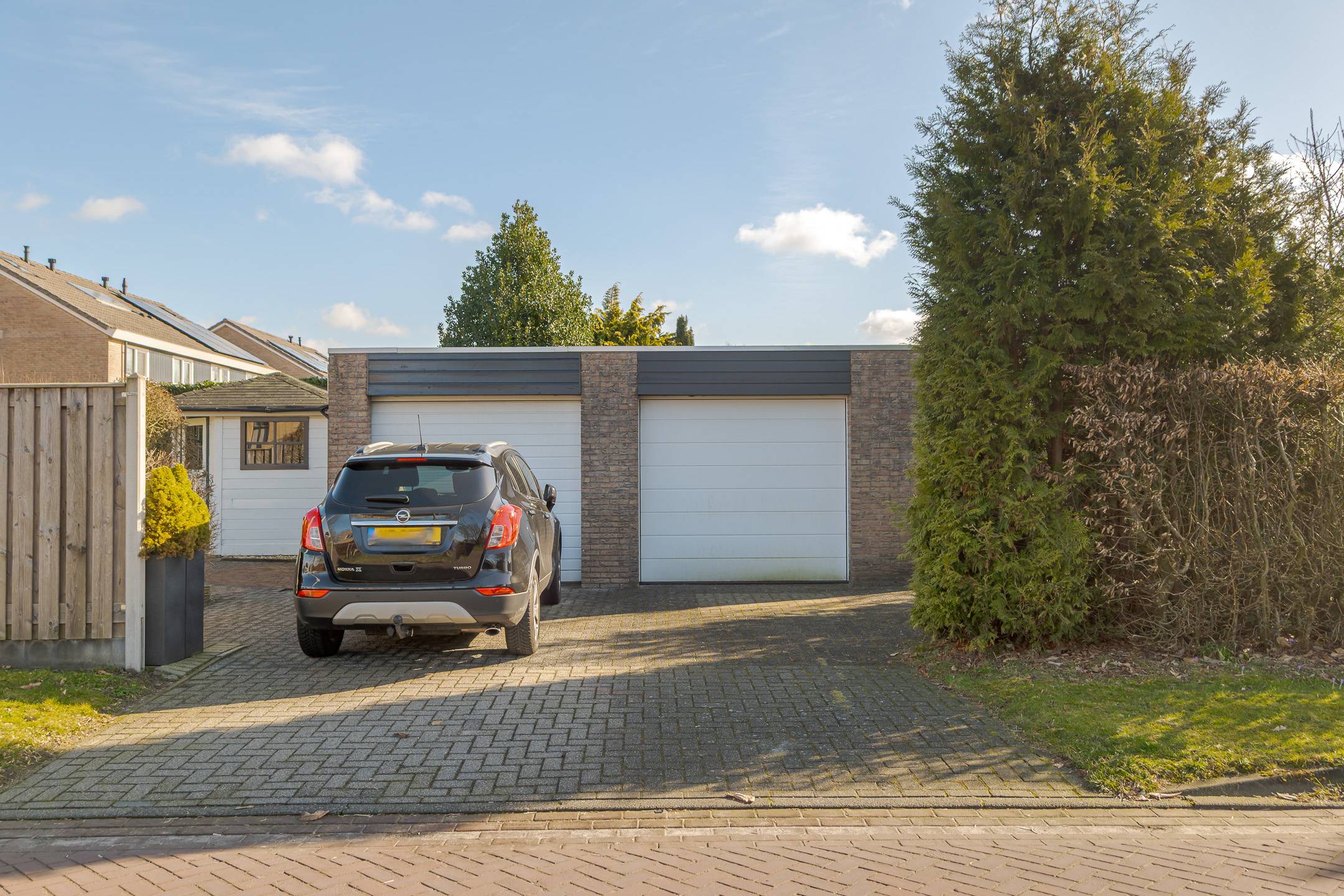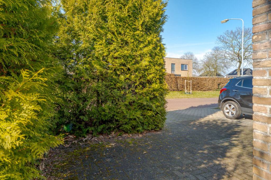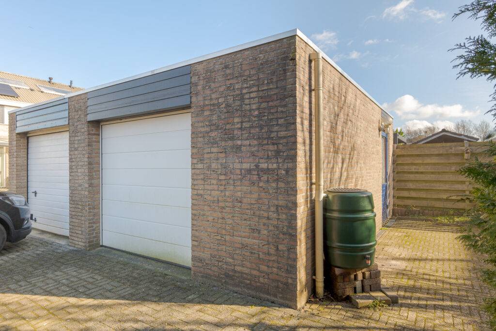 De kavel is 314 m² groot. Er is een voor-, zij- en besloten achtertuin met zonneterras. Op eigen terrein is parkeergelegenheid aanwezig voor 1 auto, nabij de woning is openbare parkeergelegenheid. De stenen garage (binnenwerks 4,00 x 5,90 meter) is voorzien van een betonvloer en een elektrisch bedienbare garagedeur.