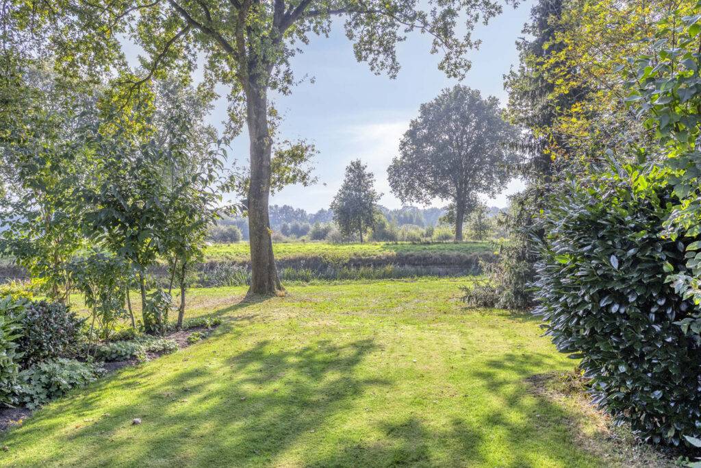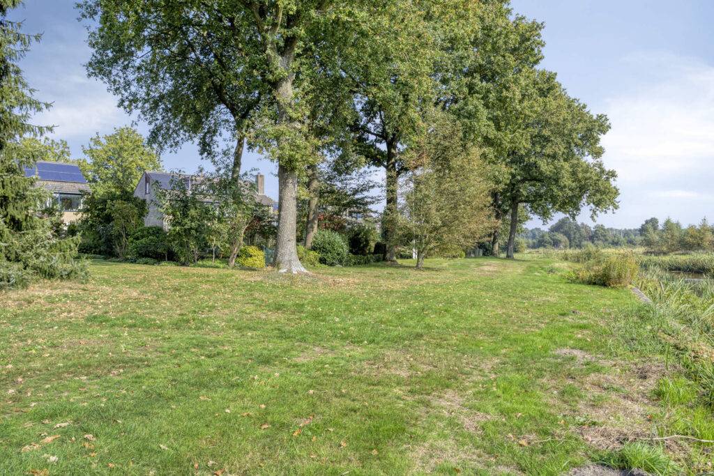 De woning beschikt over zowel een voor- als achtertuin. De zonnige achtertuin, gelegen op het zuiden, biedt een prachtig uitzicht over water, natuurgebied en het dorp Ees. De aangebouwde garage is vanuit de woning toegankelijk en voorzien van een sectionaaldeur met afstandsbediening. Achter de bijkeuken bevindt zich een houten berging. Het geheel staat op een perceel van 306 m² eigen grond.