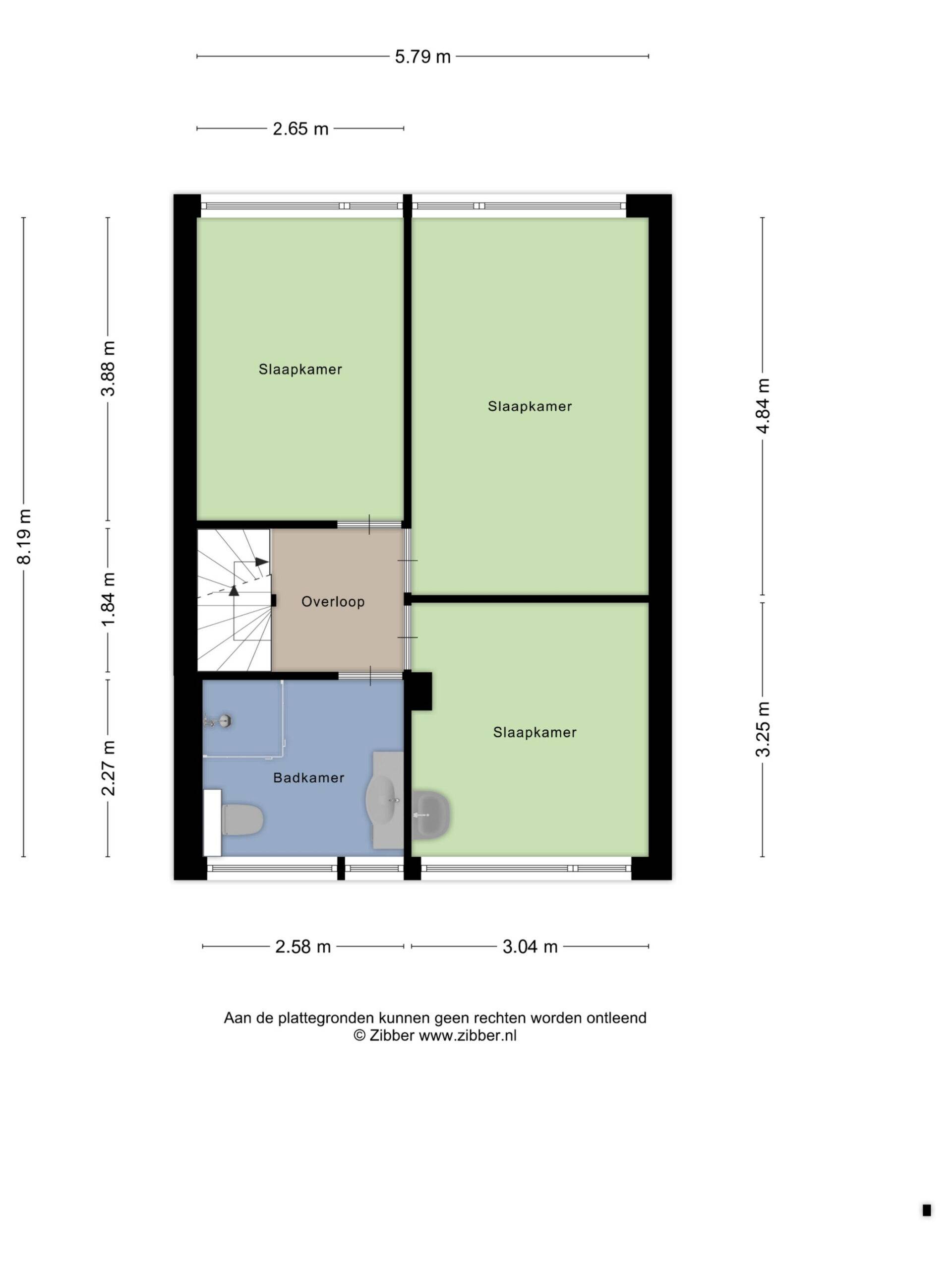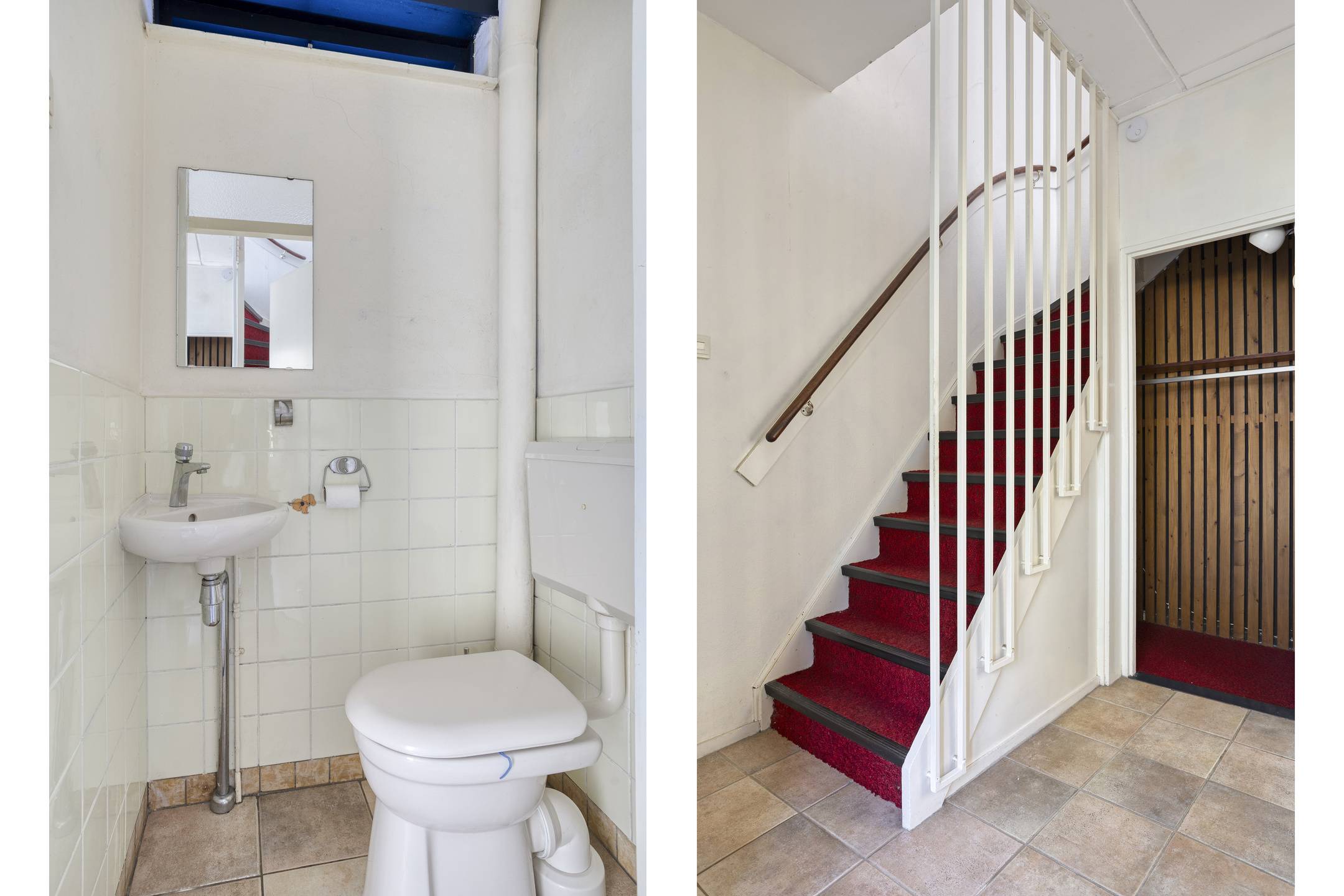 1e verdieping: overloop, 3 slaapkamers en een badkamer met douchecabine, wastafelmeubel en 2e toilet, vaste trap naar de: