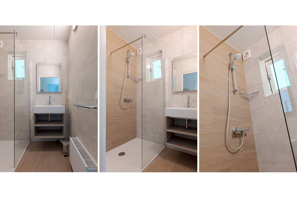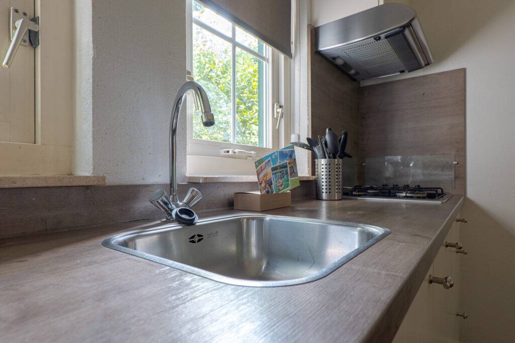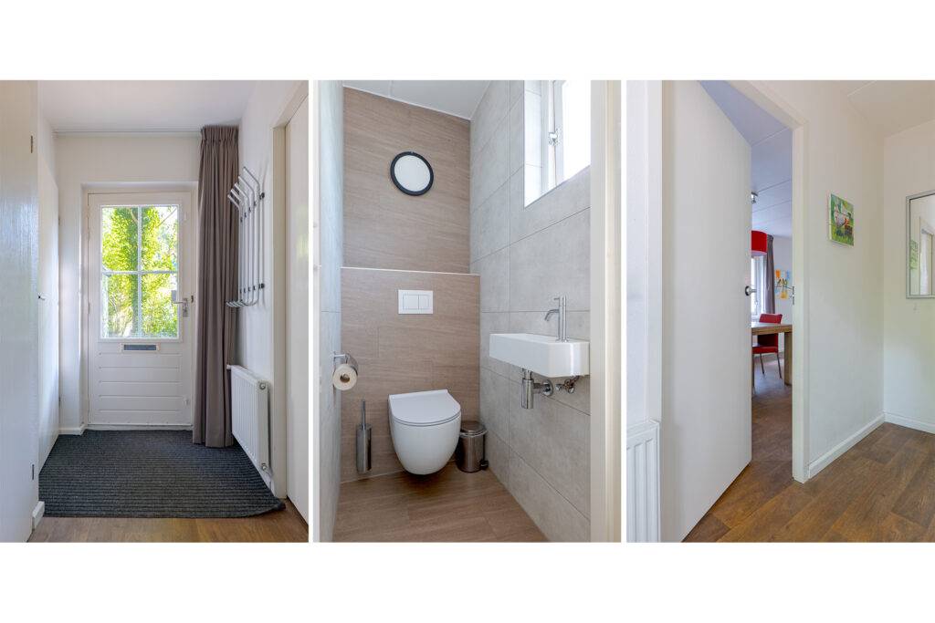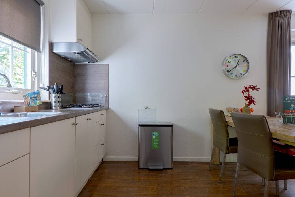 Indeling: hal, toilet (separaat) en badkamer met douche en wastafelmeubel (beiden vernieuwd in 2023), de woonkamer heeft een open haard, een bedstede met gezellige speel-/slaapplekken voor de kinderen, schuifpui naar het terras en een open keuken die is voorzien van alle inbouwapparatuur (afzuigkap, gaskookplaat, combimagnetron, vaatwasmachine en koelkast met vriesvak), de inpandige berging met CV-opstelling is van buitenaf bereikbaar en heeft een eigen ingang.