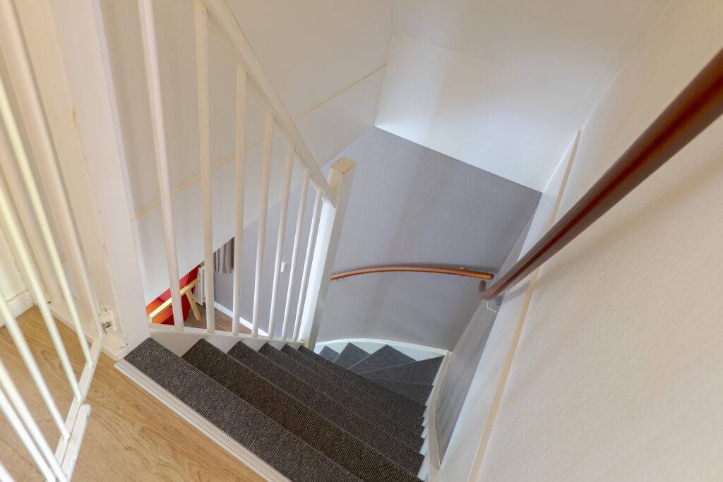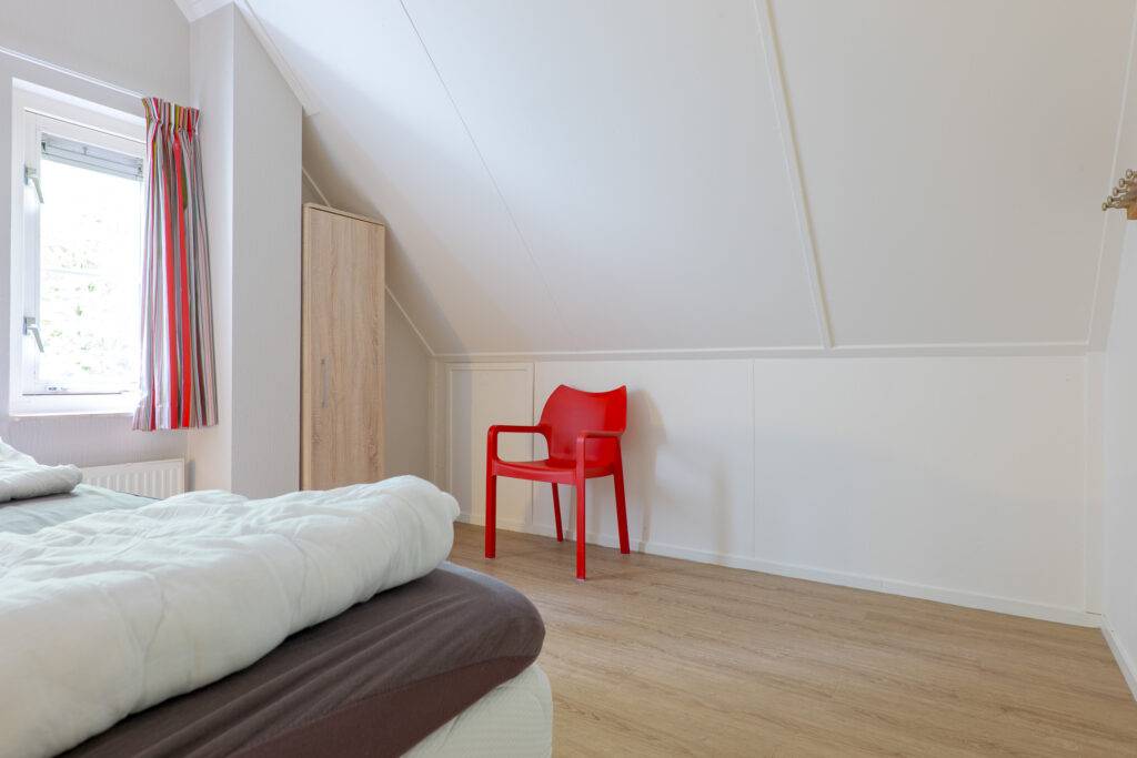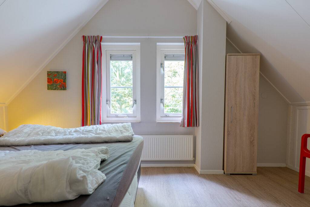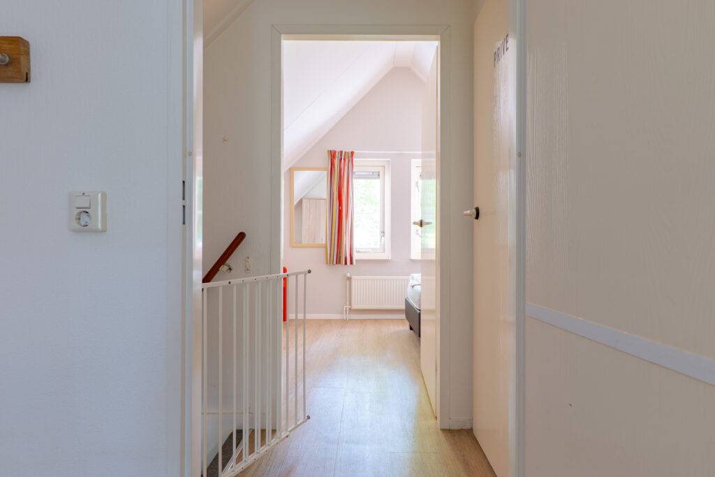 Verdieping: overloop met vaste kast en 2 slaapkamers.