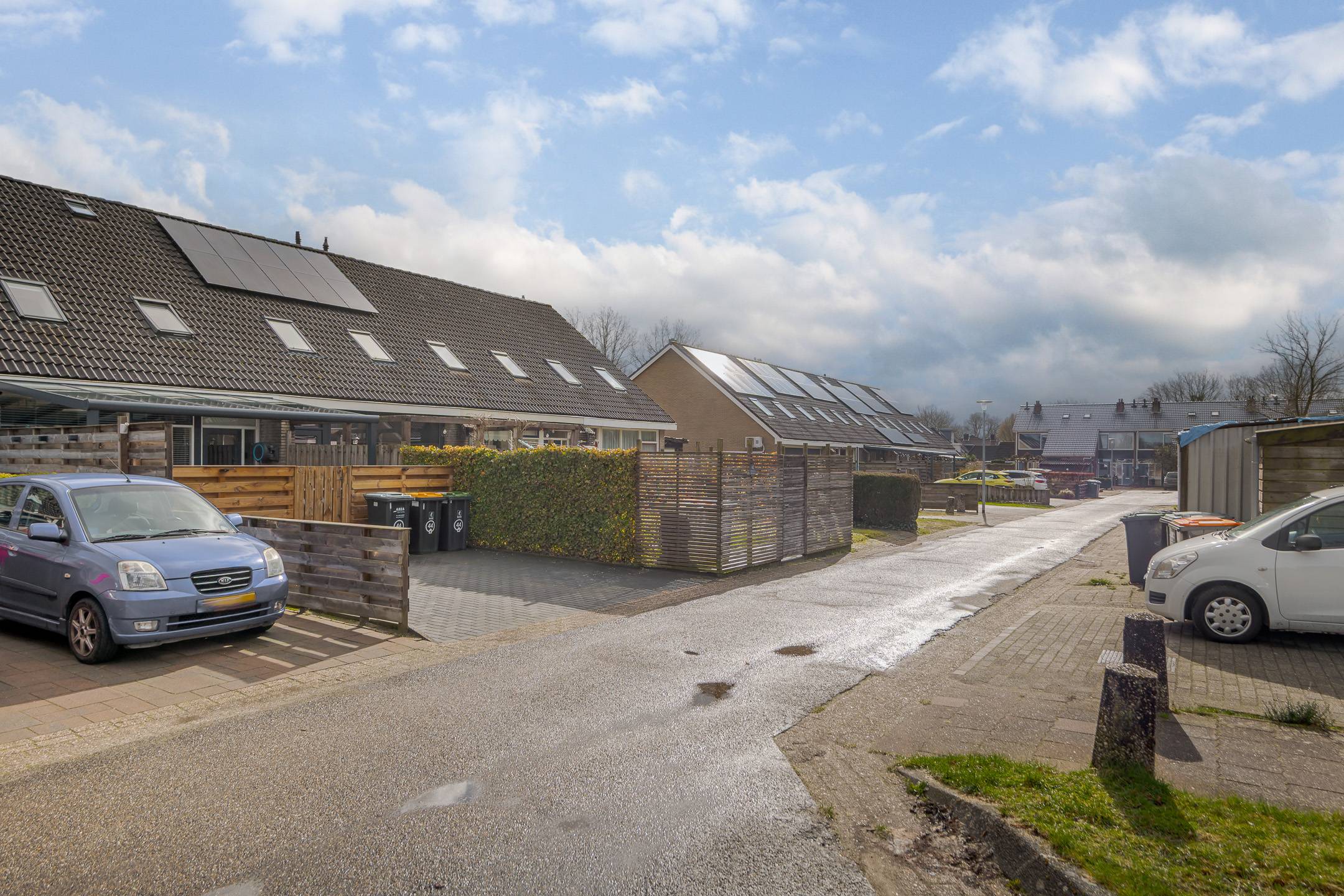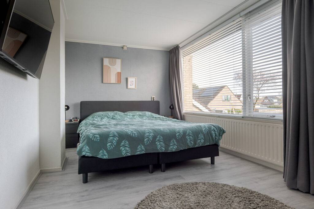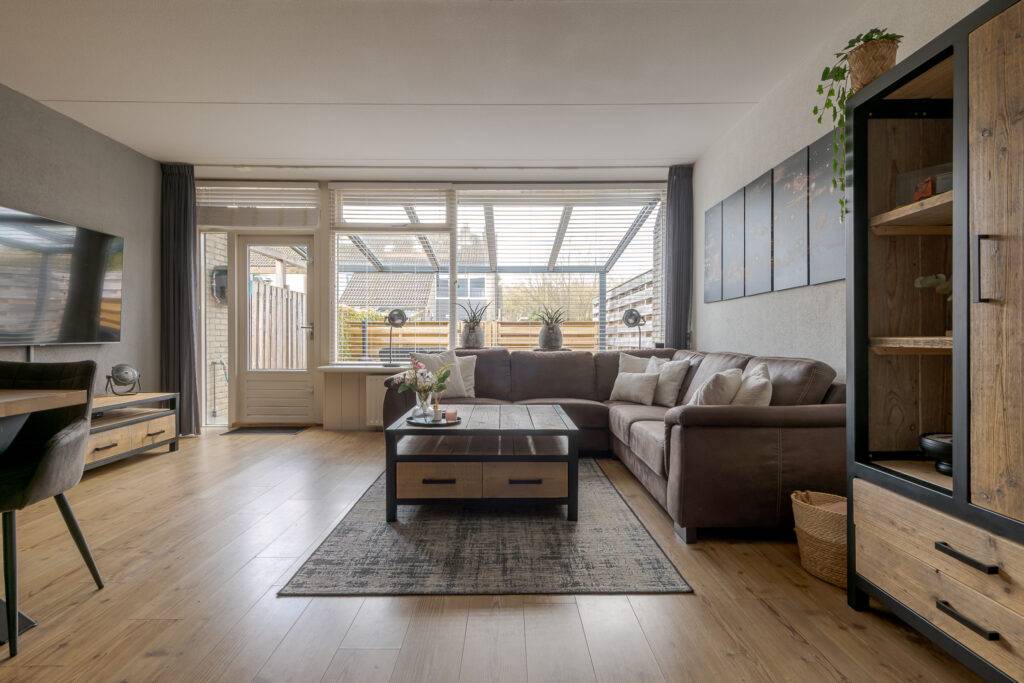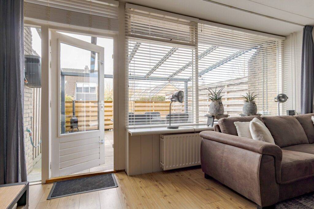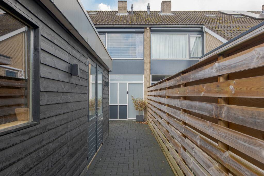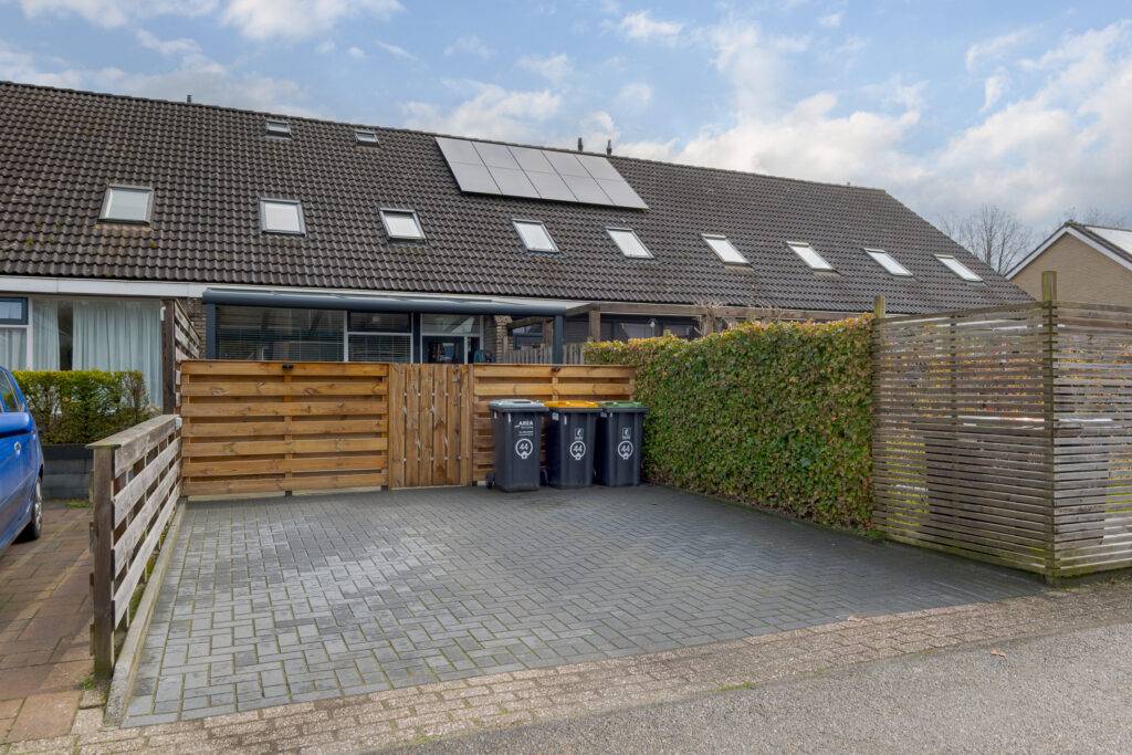 In een groene woonomgeving gelegen TUSSENWONING met houten berging, bestraat erf aan de voorzijde en een achtertuin op het zuidwesten met terrasoverkapping en daarachter een eigen parkeerplaats. De woning is gebouwd in 1974 en voorzien van centrale verwarming met een HRE-combiketel (geplaatst in 2025), gedeeltelijk dubbele beglazing en airconditioning (ook geplaatst in 2025) op zowel de begane grond als de verdieping, waarmee zowel gekoeld als verwarmd kan worden.